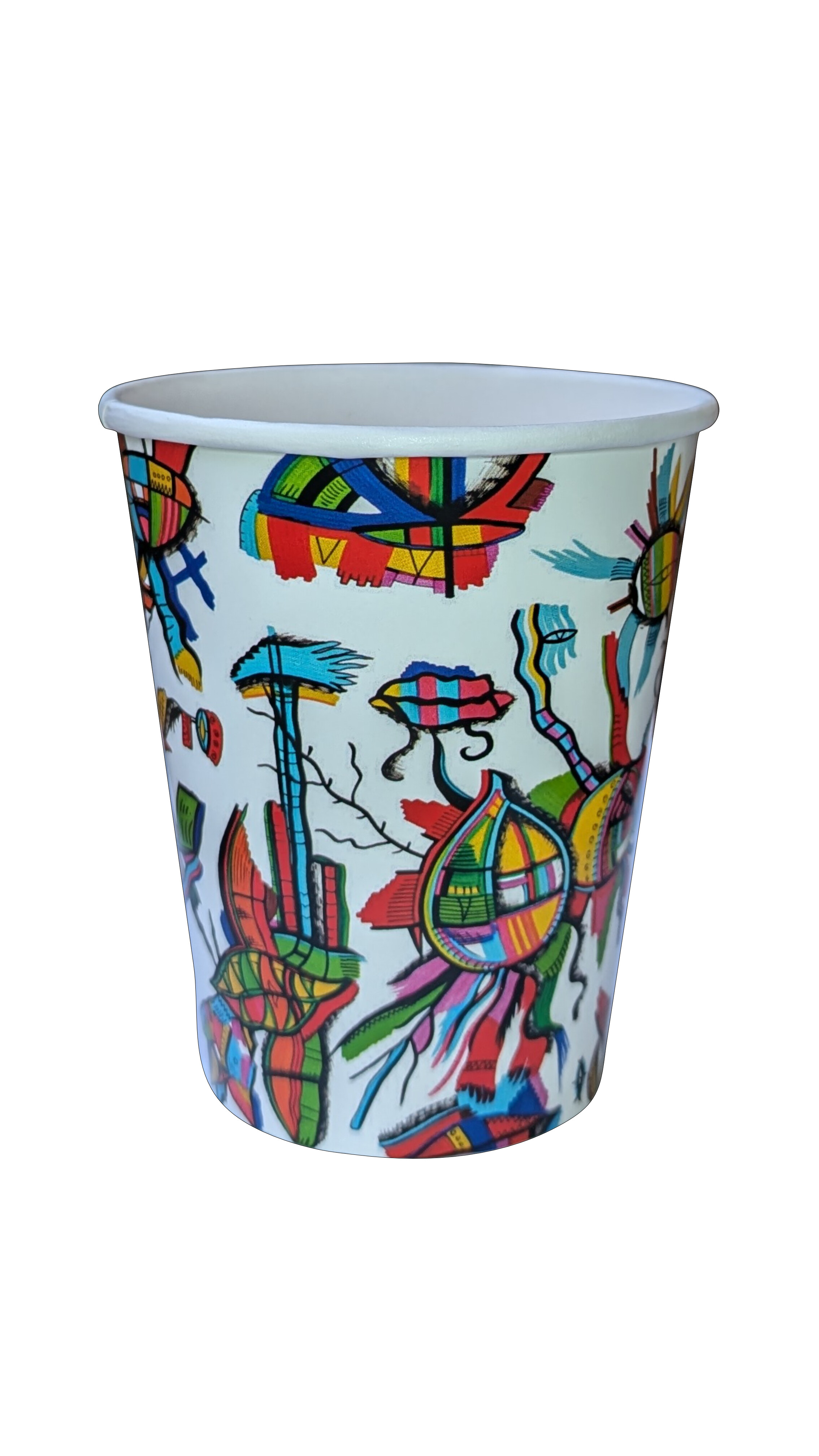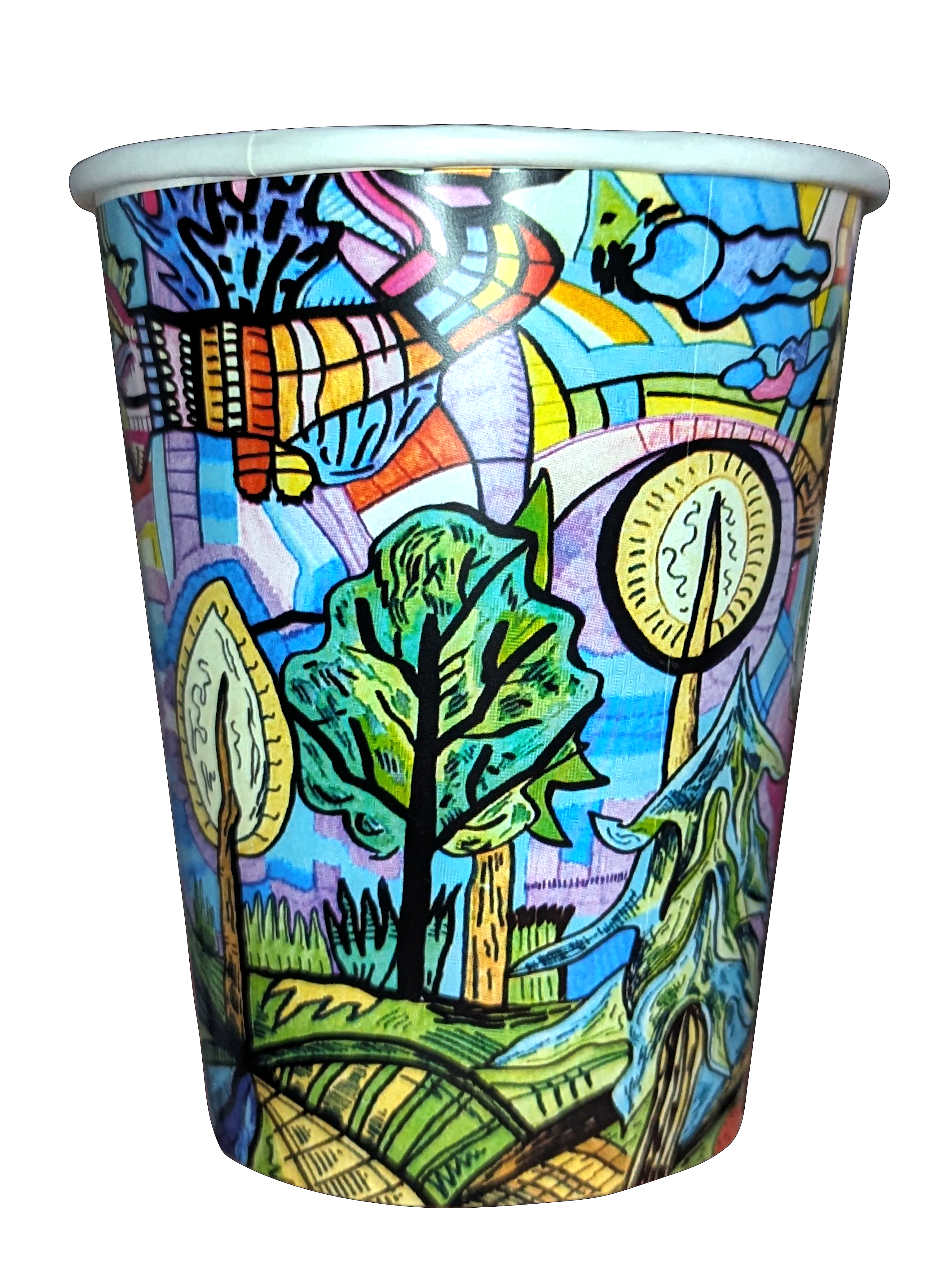 Nasze kubki papierowe na kawę to kubki z misją. Każdy kubek to małe dzieło sztuki. Zawiera obraz artystów Fundacji po doświadczeniu schizofrenii. Każdy obraz to historia i emocje zawarte w nim, a jednocześnie dowód na terapeutyczną wartość sztuki. Na każdym kubku znajduje się kod QR, który prowadzi do treści psychoedukacyjnych. Kubki jednorazowe przyciągają uwagę, sprawiają, że kawa smakuje po prostu lepiej. Część dochodu z kubków trafia bezpośrednio do podopiecznych Fundacji.