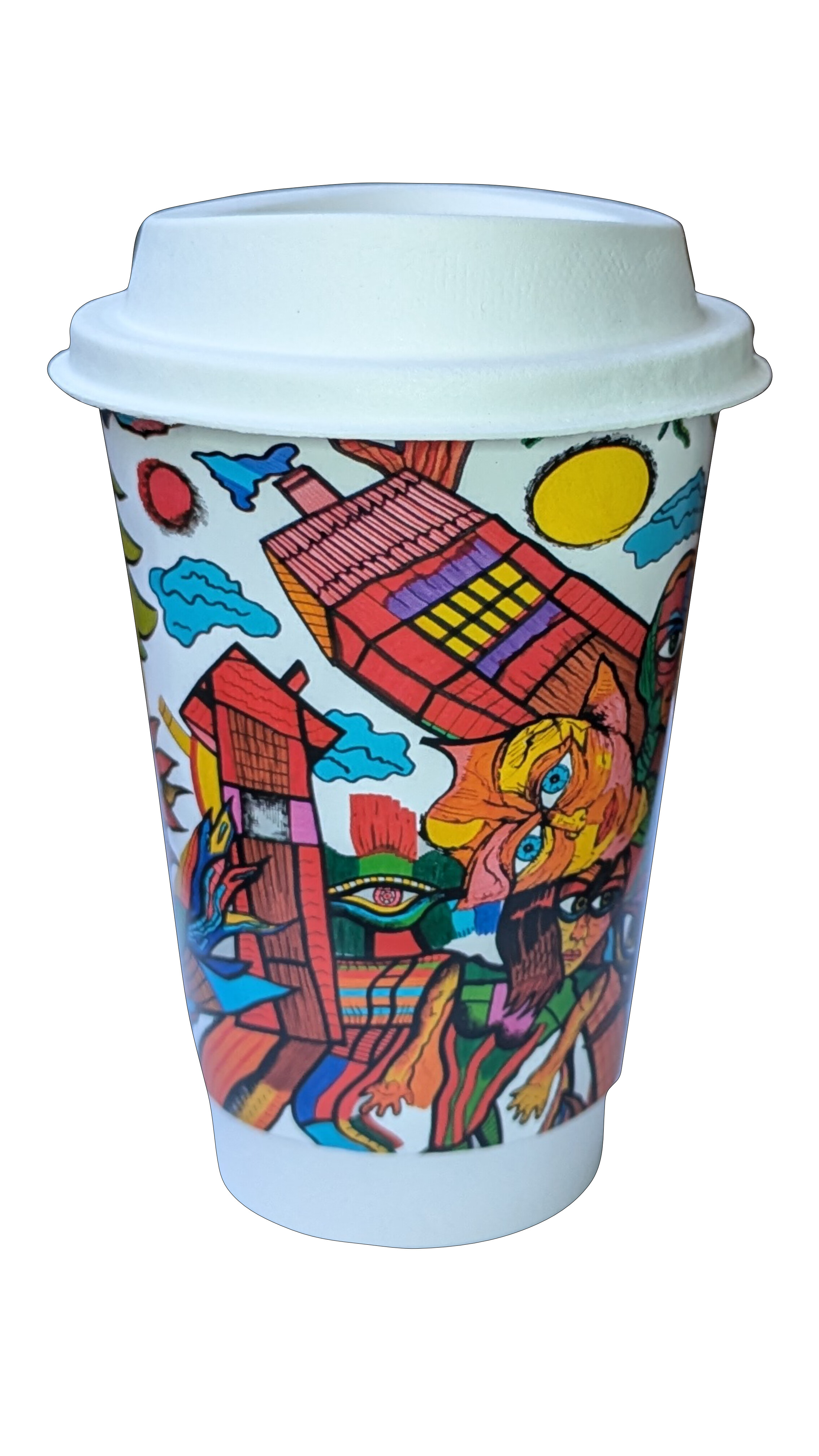 Nasze kubki papierowe na kawę to kubki z misją. Każdy kubek to małe dzieło sztuki. Zawiera obraz artystów Fundacji po doświadczeniu schizofrenii. Każdy obraz to historia i emocje zawarte w nim, a jednocześnie dowód na terapeutyczną wartość sztuki. Na każdym kubku znajduje się kod QR, który prowadzi do treści psychoedukacyjnych. Kubki jednorazowe przyciągają uwagę, sprawiają, że kawa smakuje po prostu lepiej. Część dochodu z kubków trafia bezpośrednio do podopiecznych Fundacji.