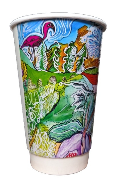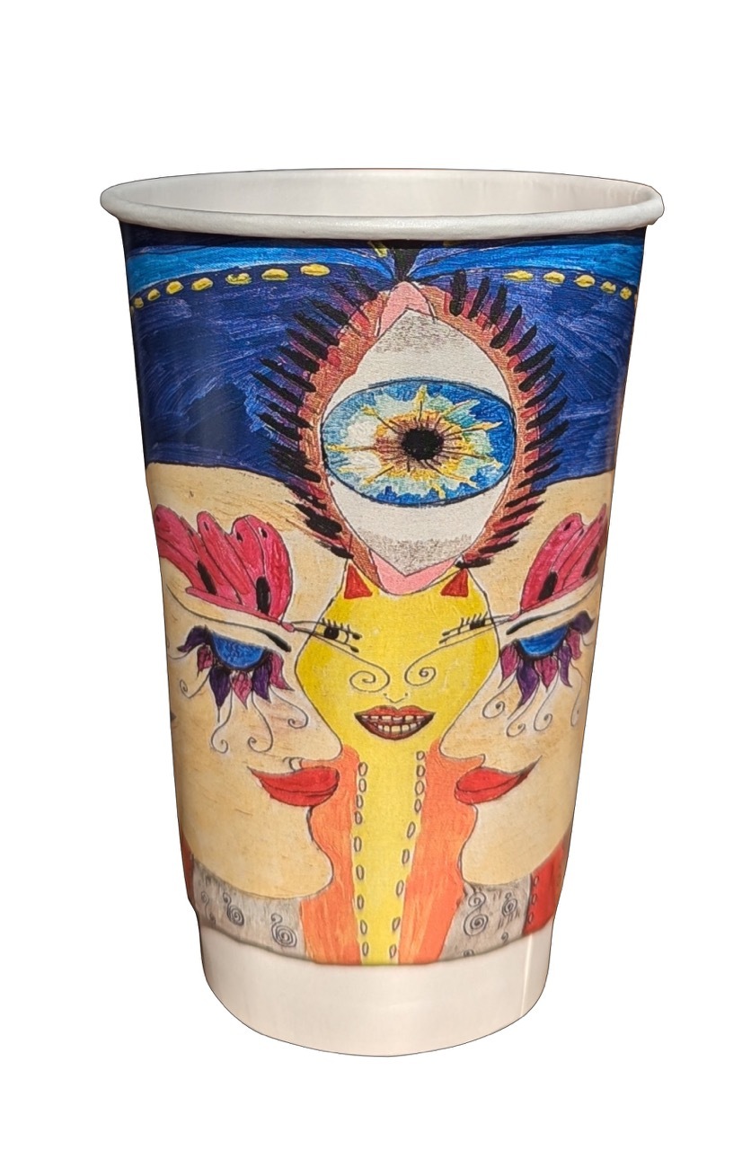 Nasze kubki papierowe na kawę to kubki z misją. Każdy kubek to małe dzieło sztuki. Zawiera obraz artystów Fundacji po doświadczeniu schizofrenii. Każdy obraz to historia i emocje zawarte w nim, a jednocześnie dowód na terapeutyczną wartość sztuki. Na każdym kubku znajduje się kod QR, który prowadzi do treści psychoedukacyjnych. Kubki jednorazowe przyciągają uwagę, sprawiają, że kawa smakuje po prostu lepiej. Część dochodu z kubków trafia bezpośrednio do podopiecznych Fundacji.