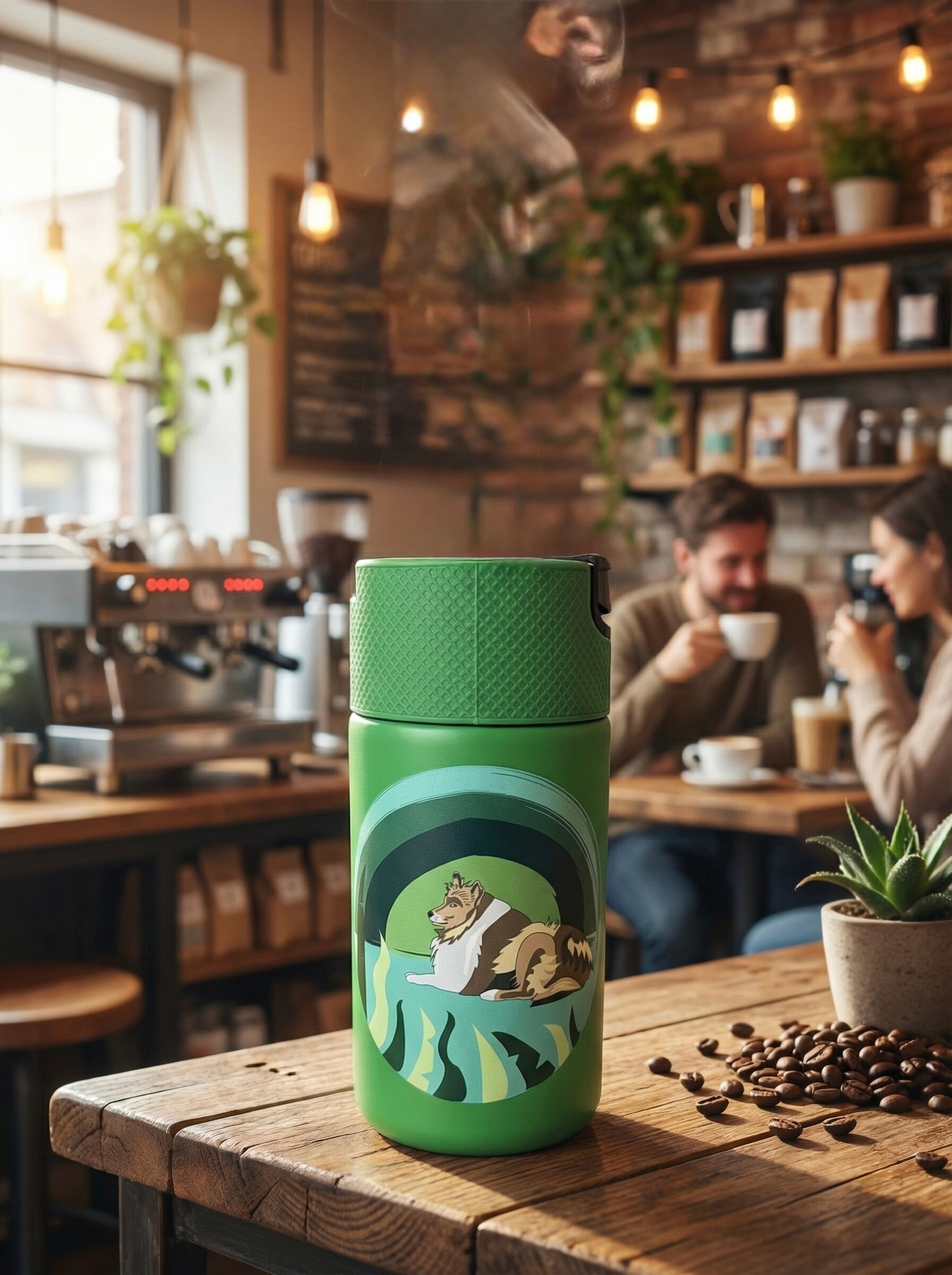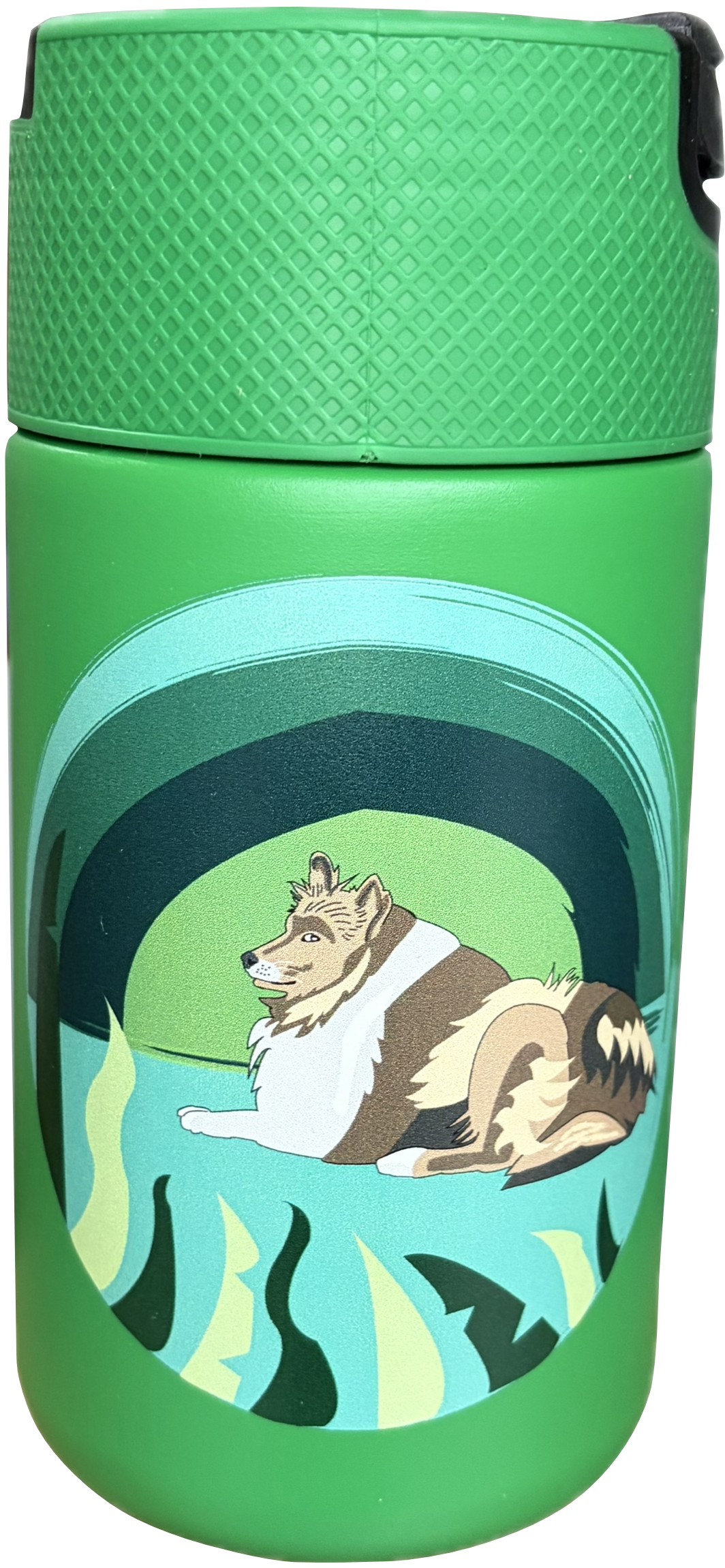 Kubek termiczny na kawę 400ml duży zielony z psem